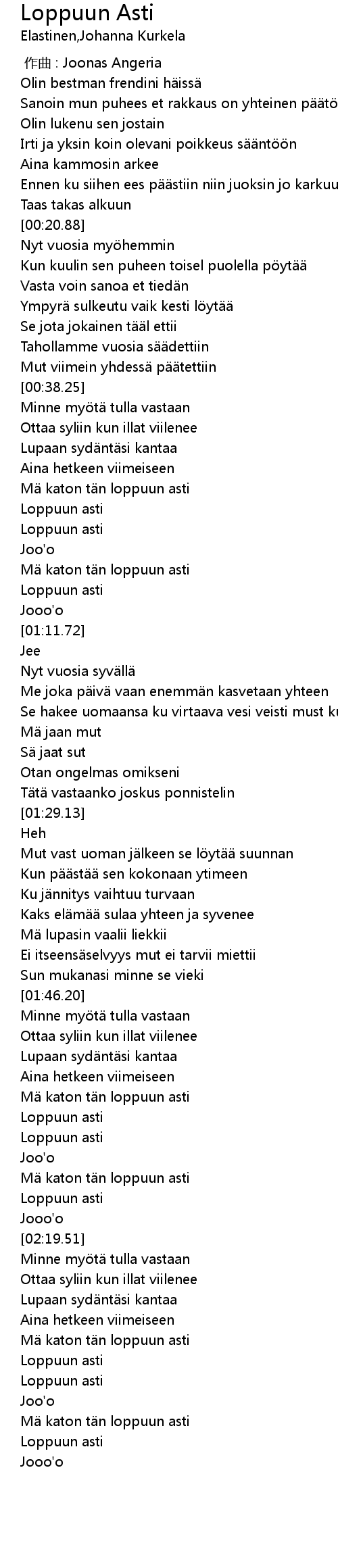 | [02:15.23] | Loppuun asti |