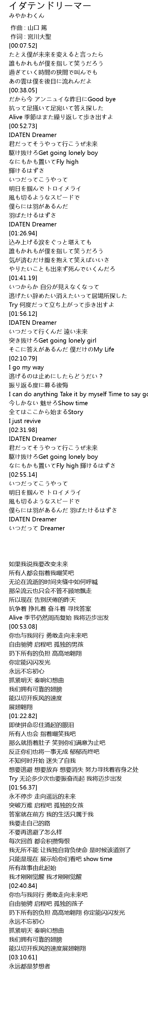 | [00:58.51] | 駆け抜けろGet going lonely boy |