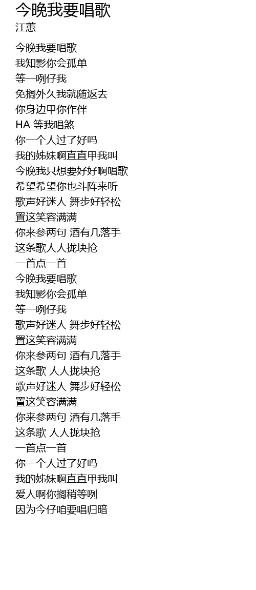 | [00:14.89] | 今晚我要唱歌 |