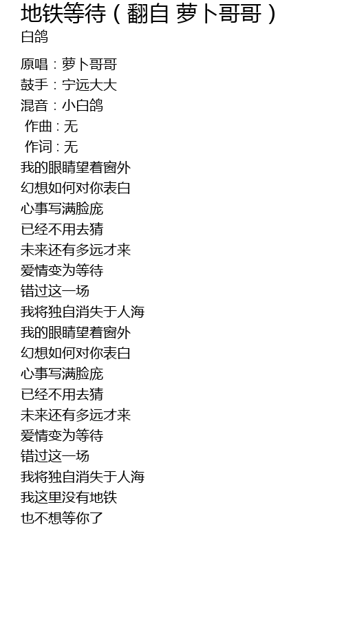| [01:50.06] | wǒ zhè lǐ méi yǒu dì tiě |