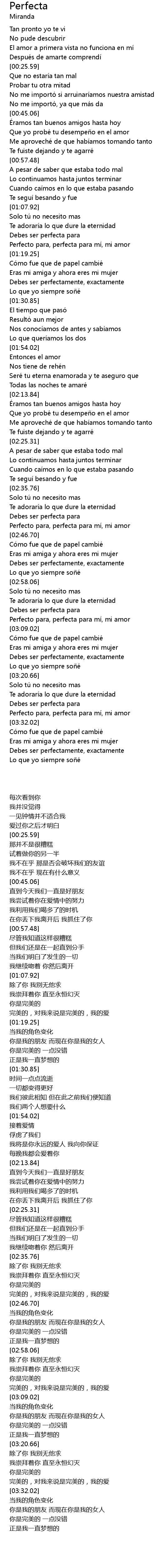 | [02:42.61] | Perfecto para, perfecta para mi, mi amor |