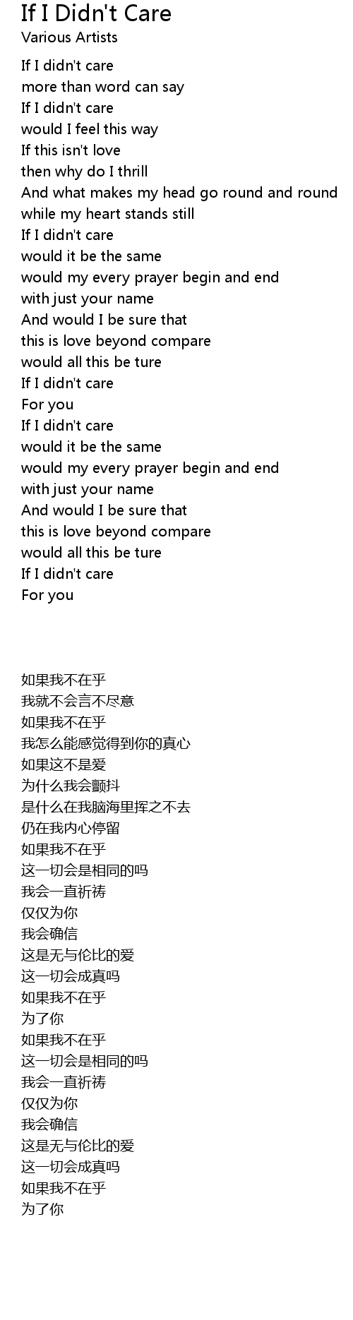 If I didn't care |