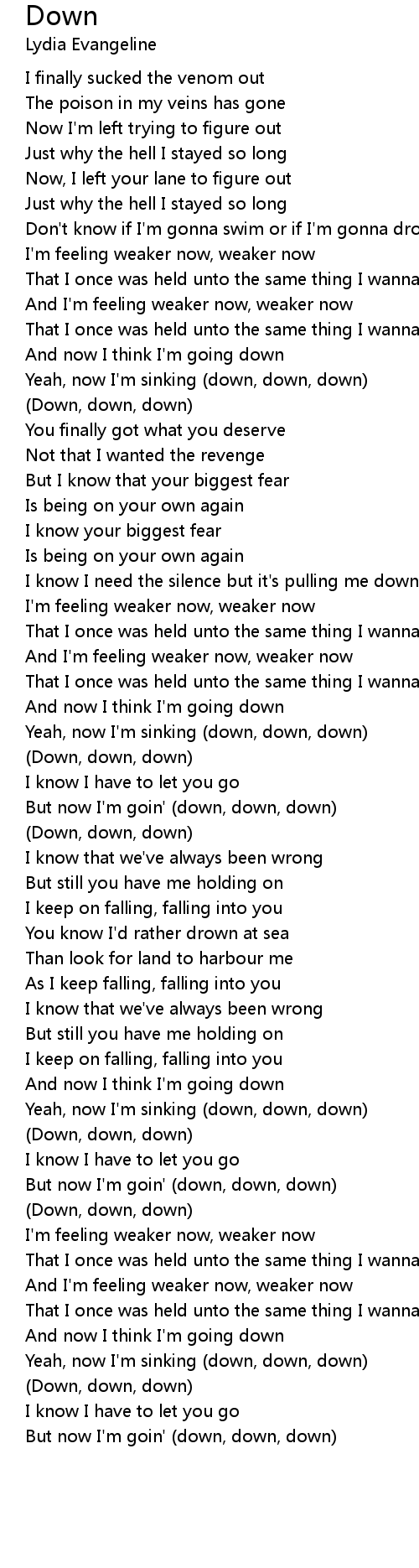 But now I'm goin' (down, down, down) |