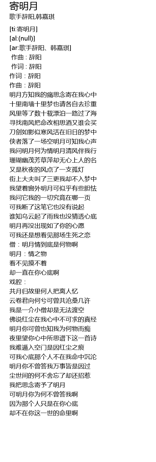 | [ar:歌手辞阳、韩嘉琪] | |