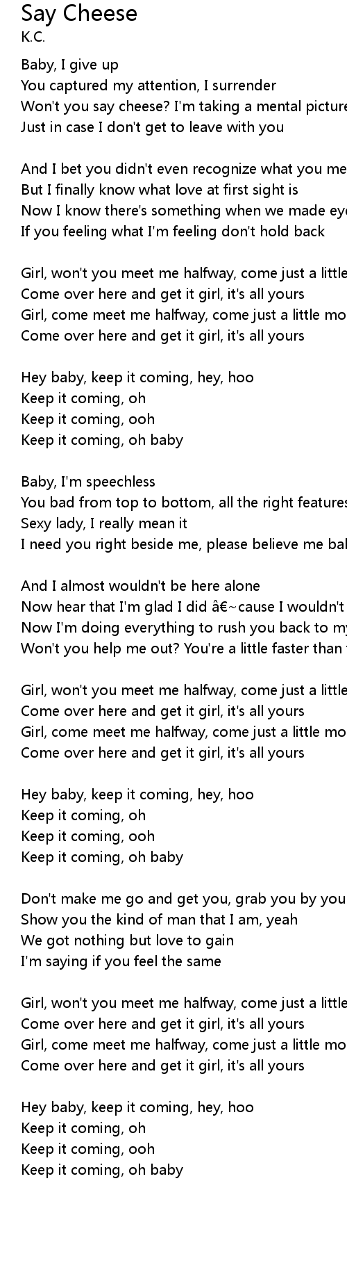 | Girl, won't you meet me halfway, come just a little more | |