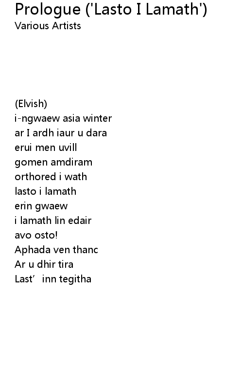| Song | Prologue ('Lasto I Lamath') |