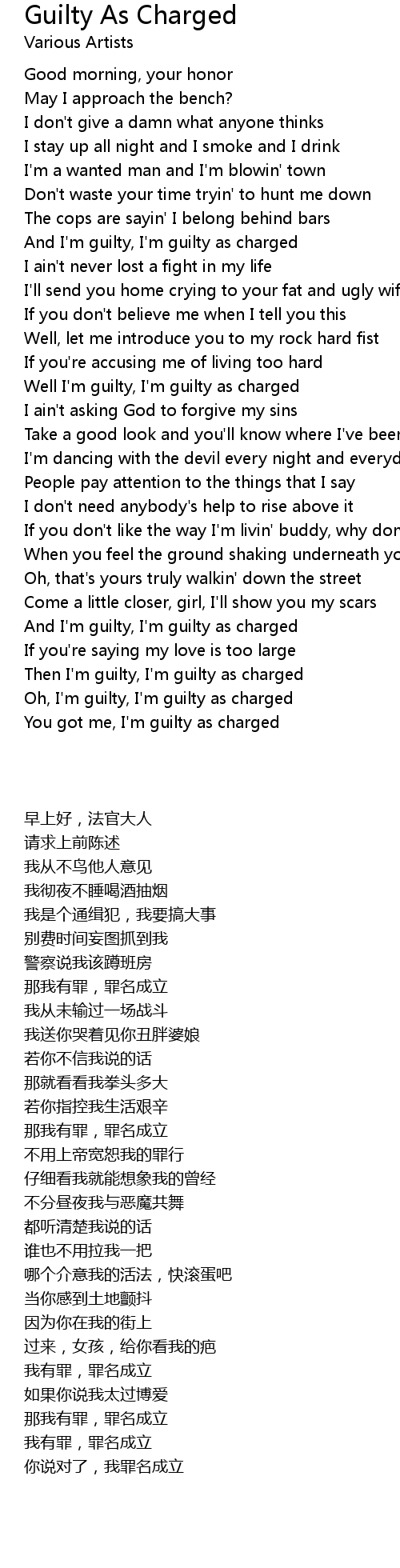 Then I'm guilty, I'm guilty as charged |
