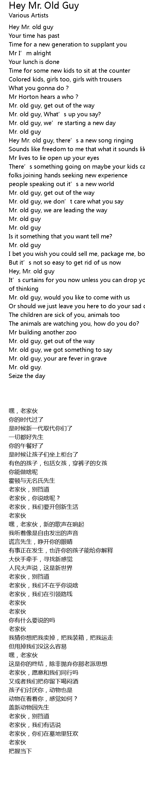 | [02:39.465] | Mr. old guy, we got something to say |