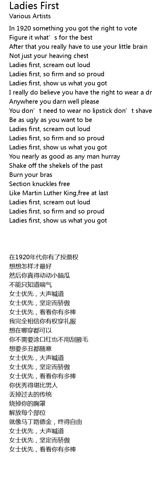 | [00:56.069] | Ladies first, so firm and so proud |