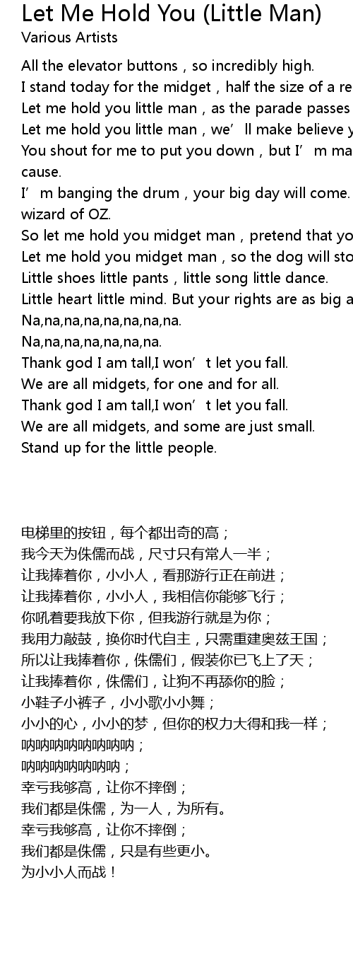 | [01:33.000] | Thank god I am tall,I won’t let you fall. |