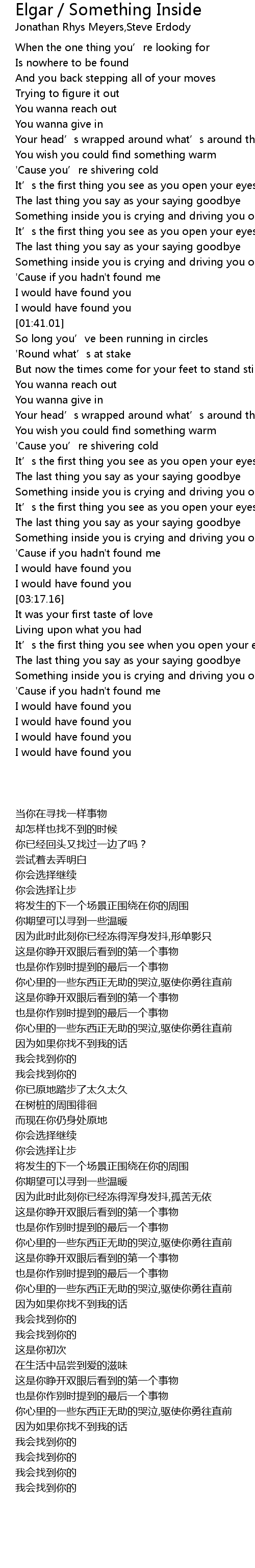 | [03:54.36] | Something inside you is crying and driving you on |