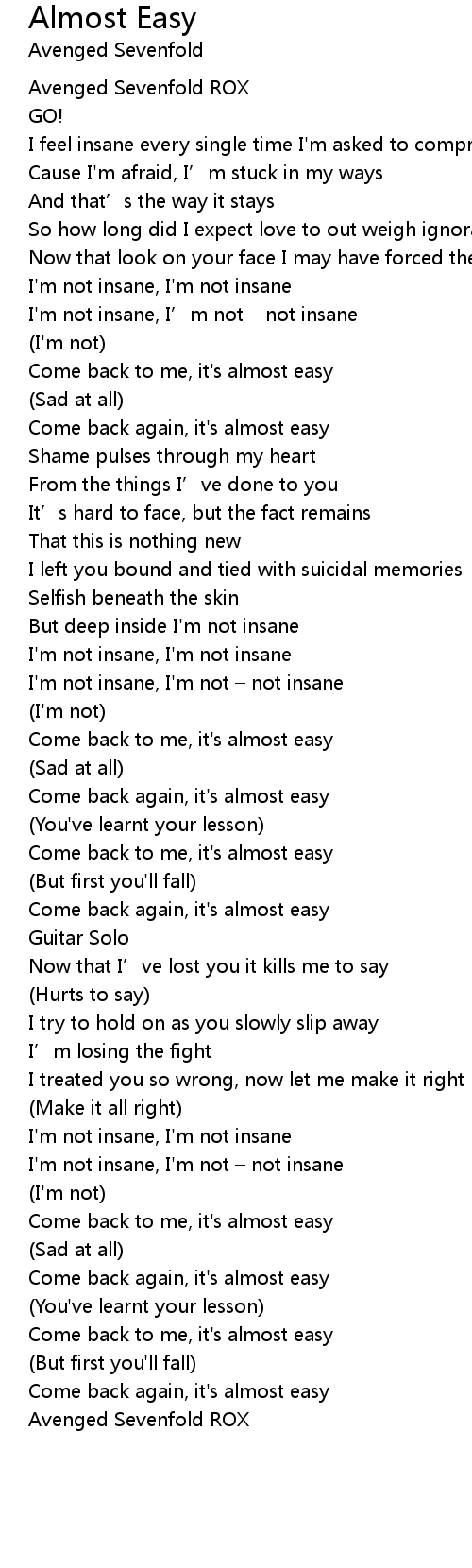 | [01:46.96] | Come back to me, it's almost easy |