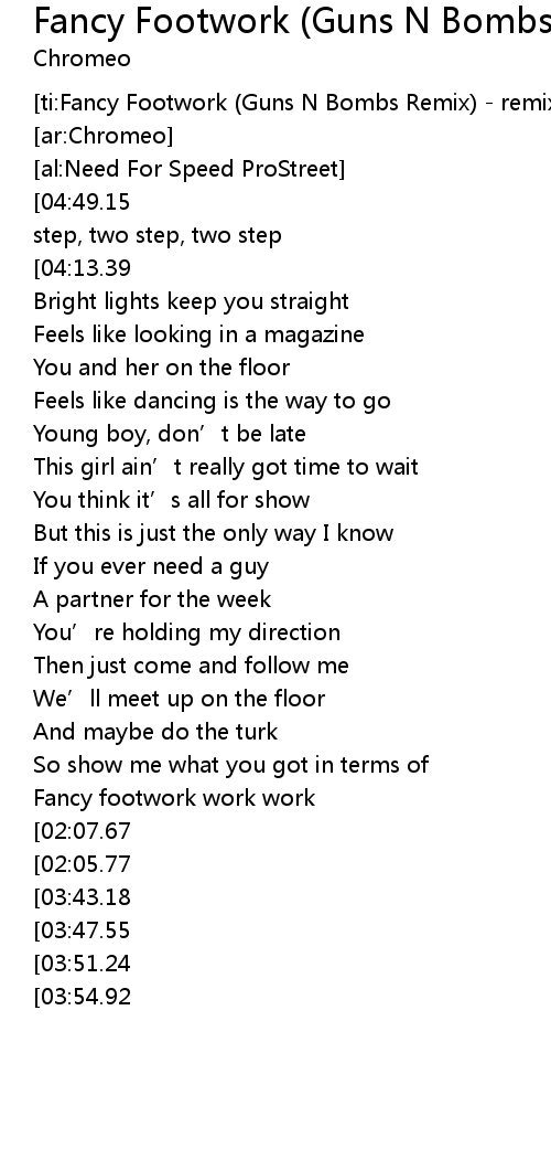 | [ti:Fancy Footwork (Guns N Bombs Remix) - remix] | |