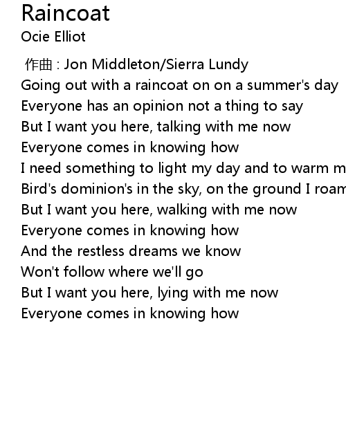 | [00:14.97] | Going out with a raincoat on on a summer' s day |