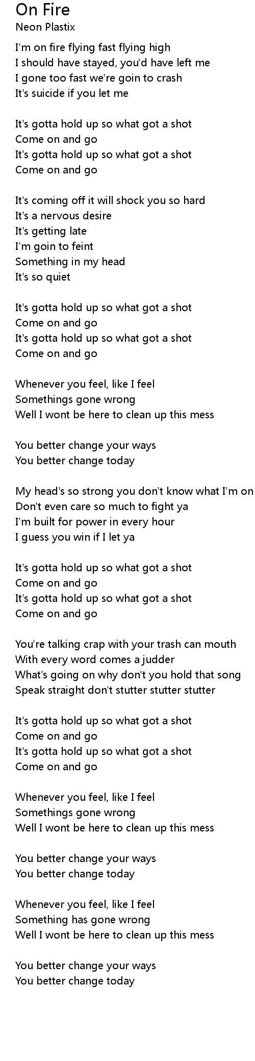 I'm on fire flying fast flying high |