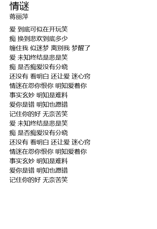 | [00:59.68] | 还没有 看明白 还让爱 迷心窍 |