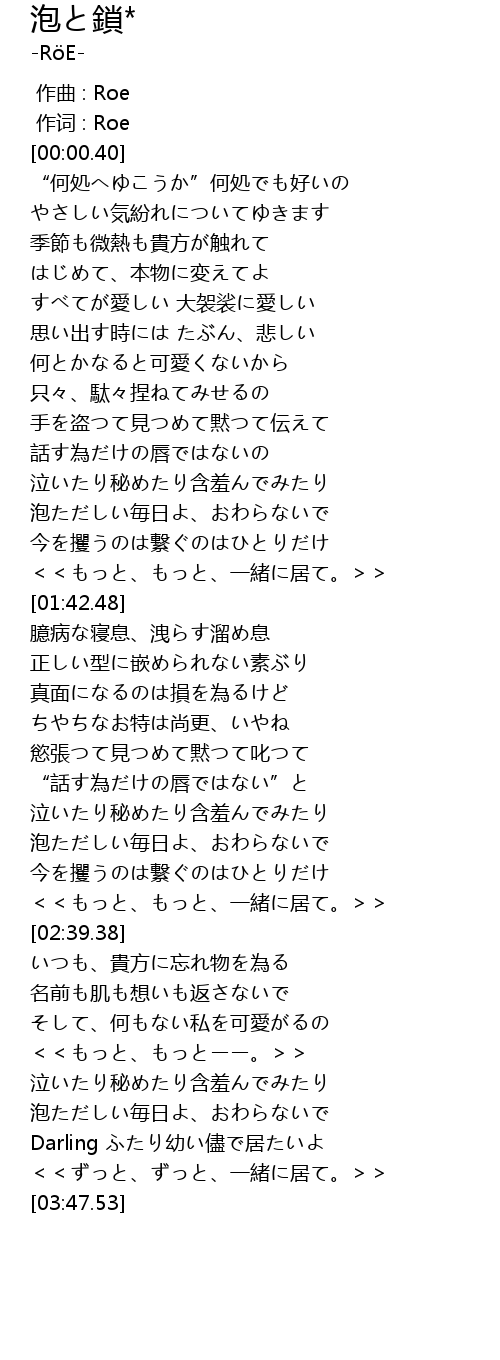 | [02:33.57] | <<もっと、もっと、一緒に居て。>> |