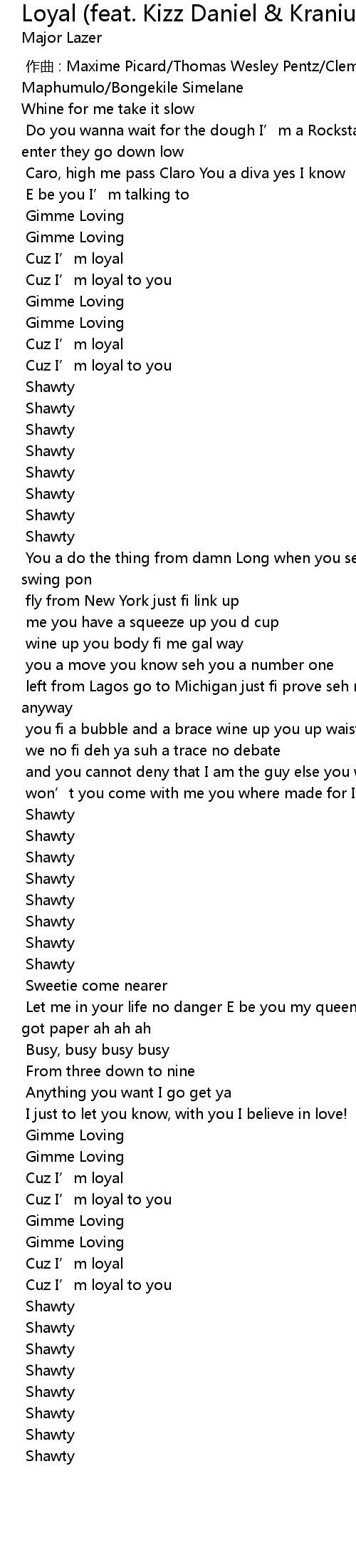 | Song | Loyal (feat. Kizz Daniel & Kranium) |