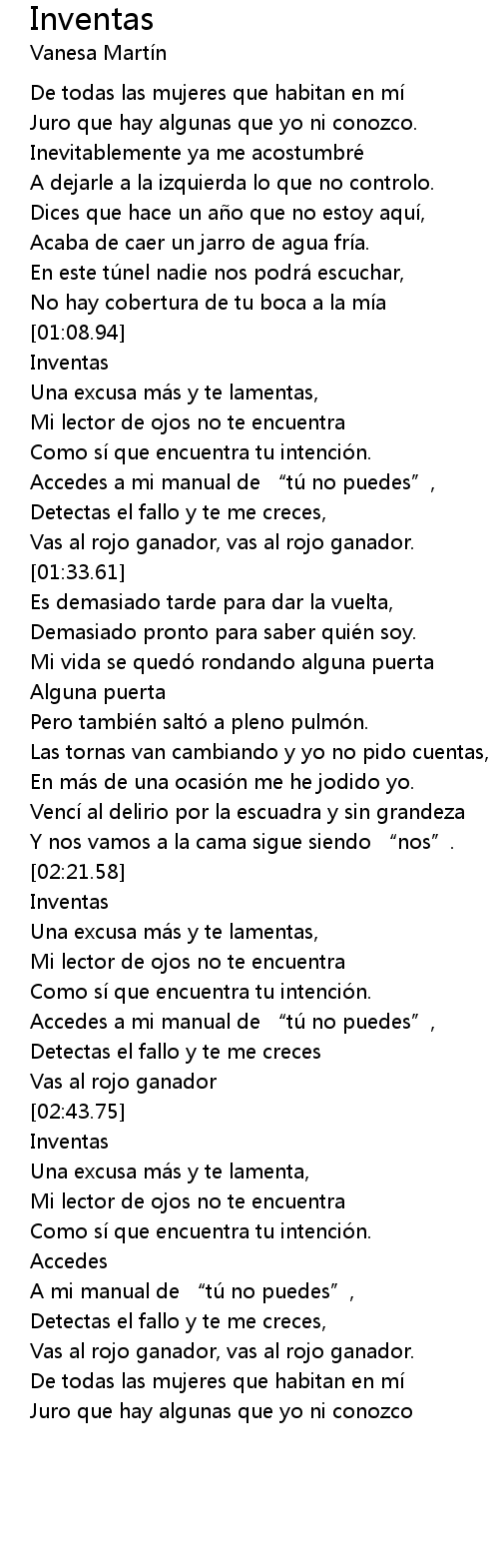| [03:14.47] | De todas las mujeres que habitan en mí |