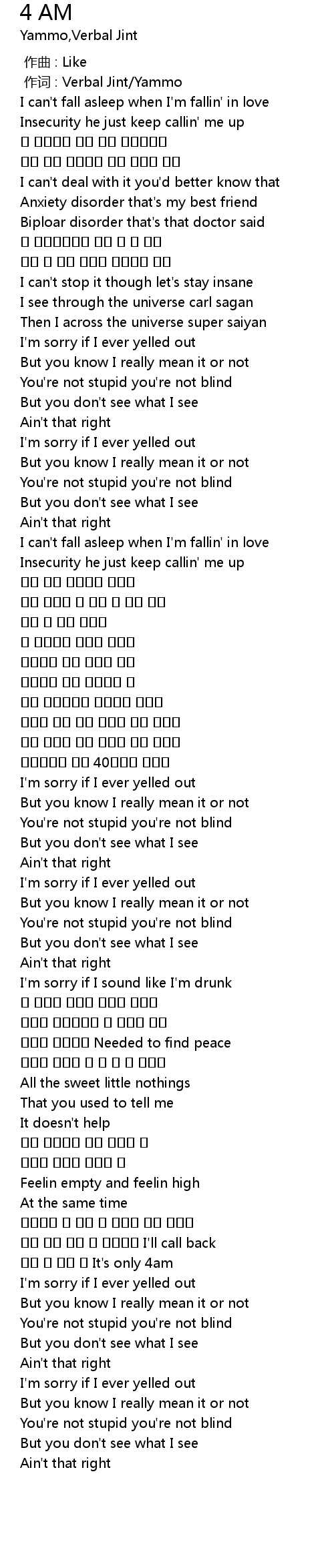 | [00:01.000] | 作词 : Verbal Jint/Yammo |
