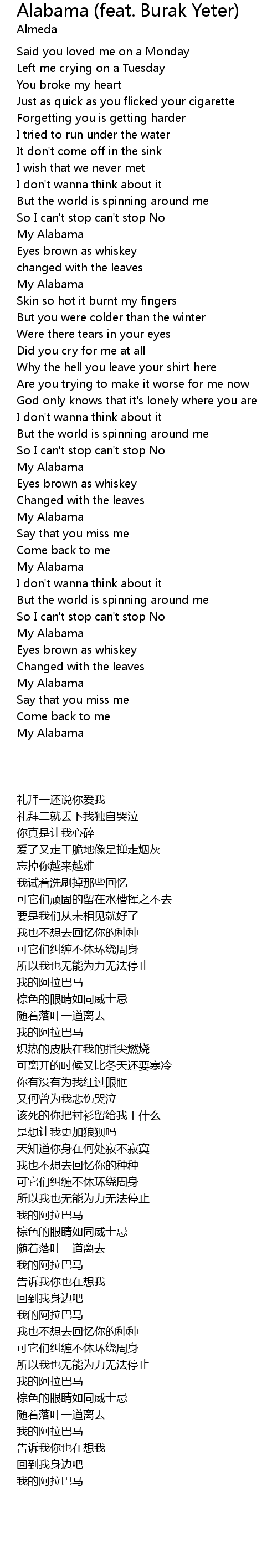 Alabama (feat. Burak Yeter) Lyrics