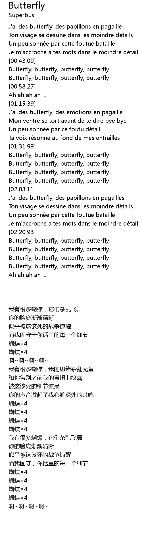 | [02:51.68] | Butterfly, butterfly, butterfly, butterfly |