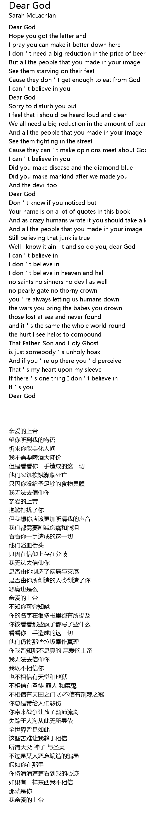 | Song | Dear God |