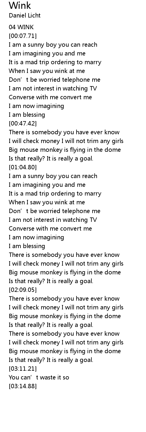 | [01:30.37] | When I saw you wink at me |