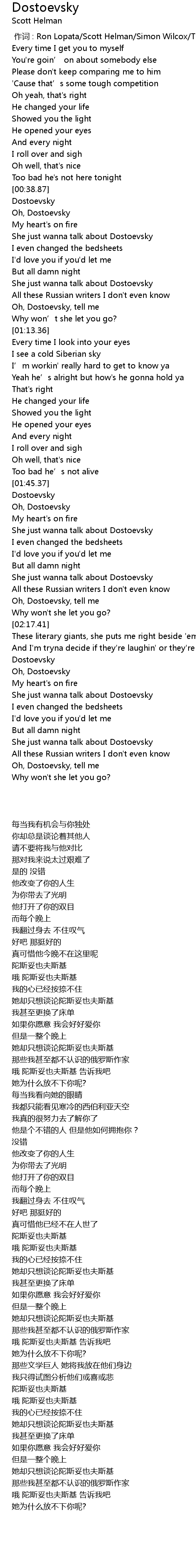 | [01:02.85] | Oh, Dostoevsky, tell me |