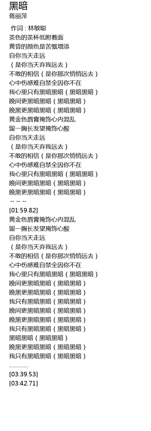 | [03:21.85] | 黑暗黑暗(黑暗黑暗) |