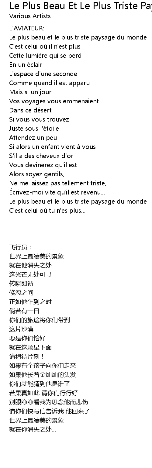 | Song | Le Plus Beau Et Le Plus Triste Paysage Du Monde |