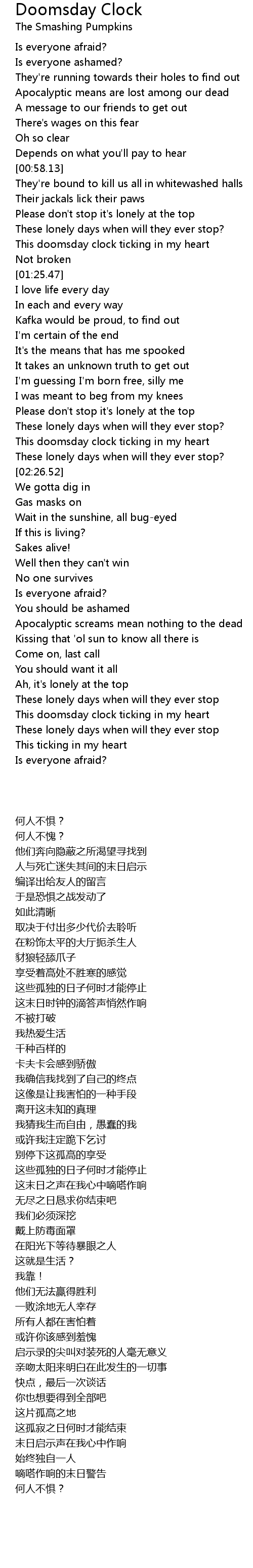 This doomsday clock ticking in my heart |