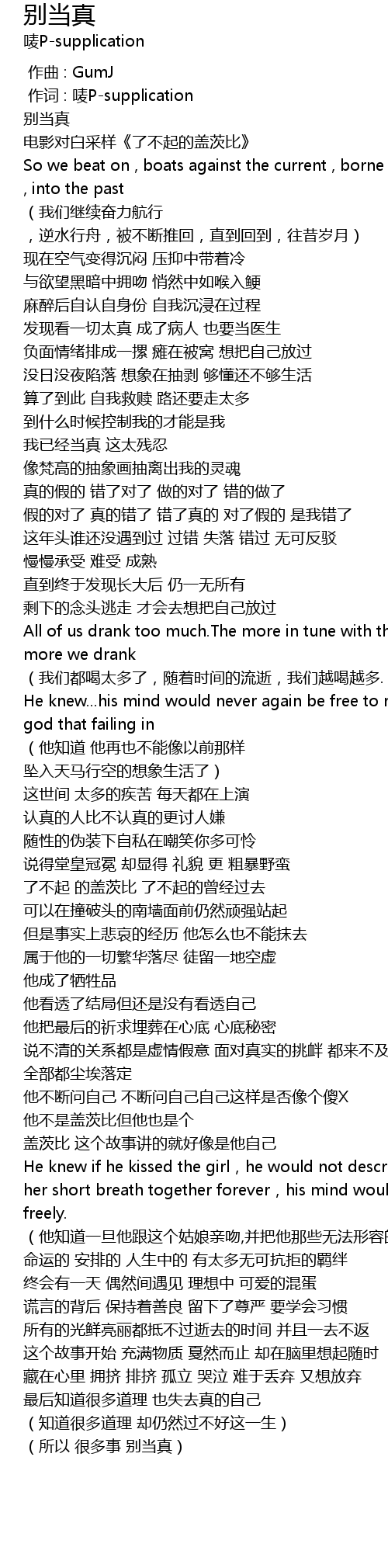 | [01:37.687] | 了不起 的盖茨比 了不起的曾经过去 |