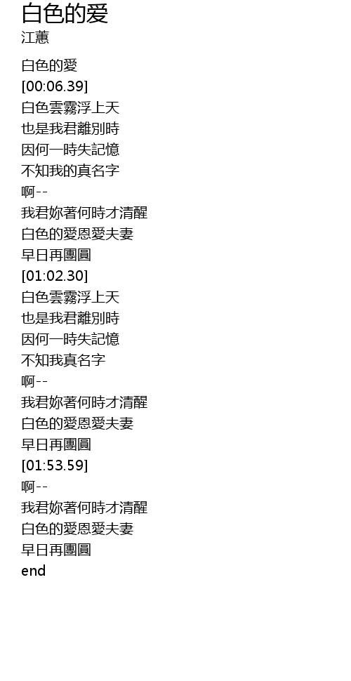 | [01:41.77] | 白色的愛恩愛夫妻 |