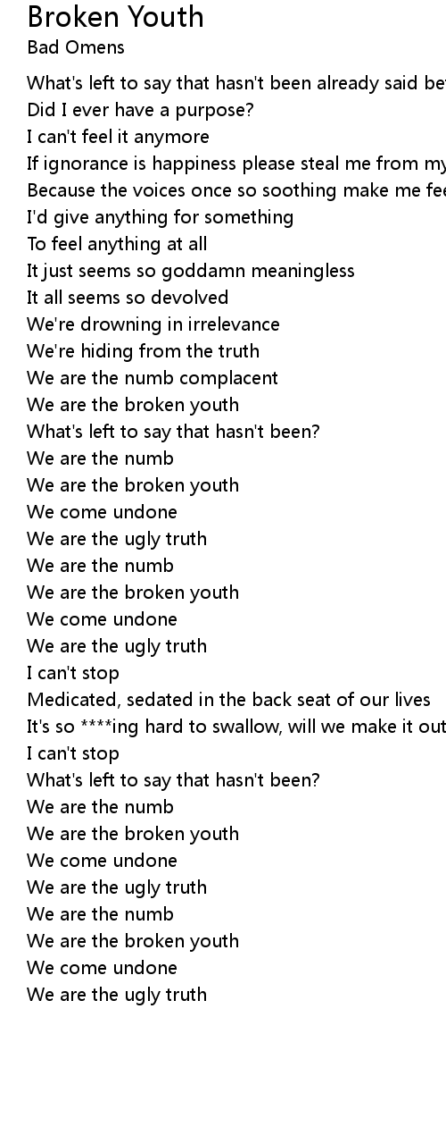 | [00:15.164] | Because the voices once so soothing make me feel so ****ing dead |