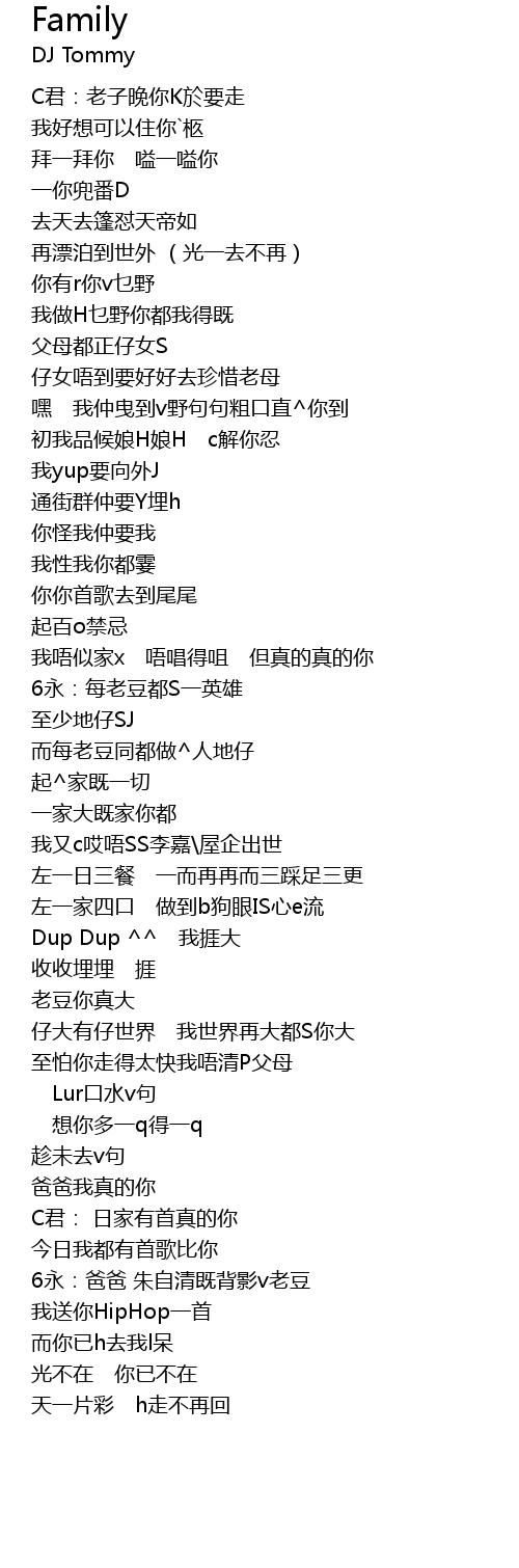 | [00:54.15] | 嘿 我仲曳到v野句句粗口直^你到 |