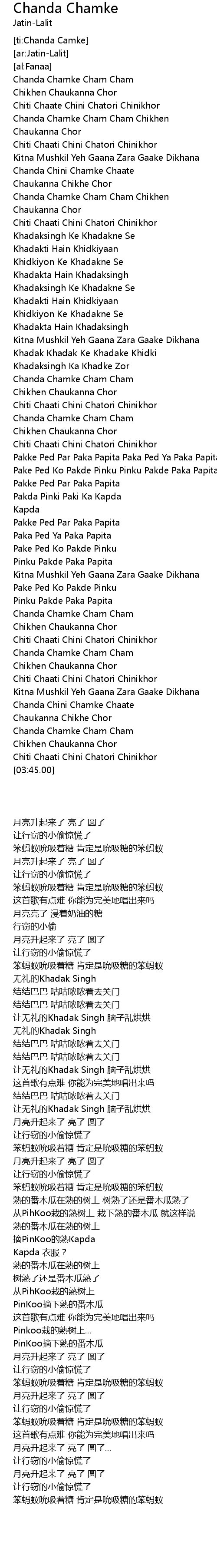 Chanda Chini Chamke Chaate |