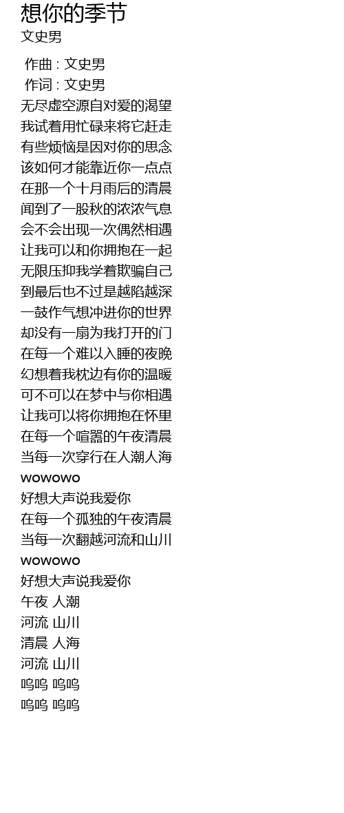 | [00:01.000] | zuò cí : wén shǐ nán |