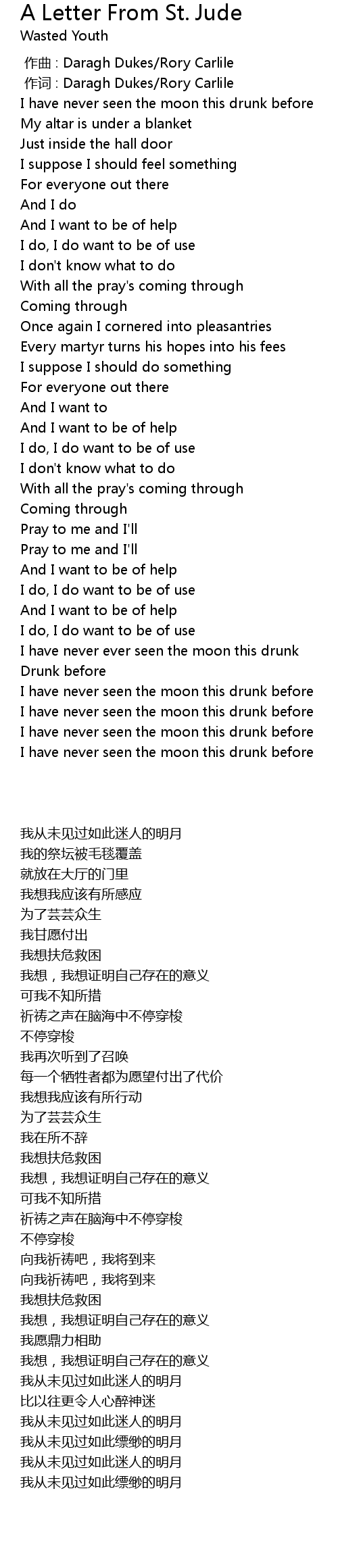 | [00:14.12] | I have never seen the moon this drunk before |