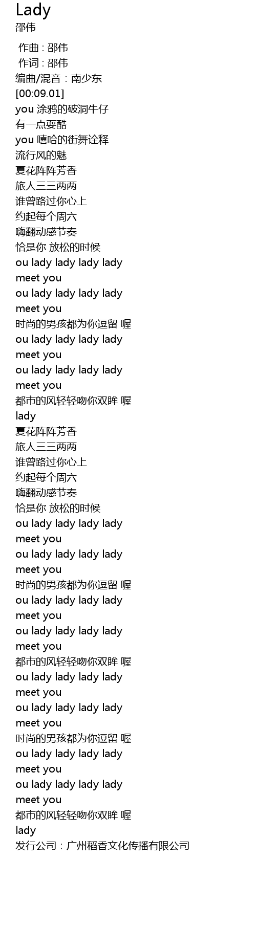 | [02:56.07] | 发行公司:广州稻香文化传播有限公司 |