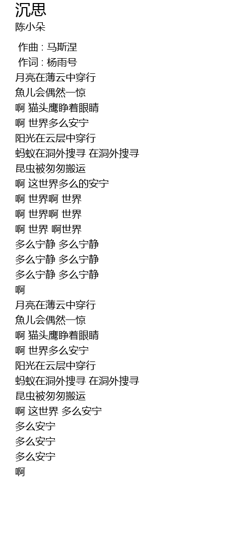 | [00:35.51] | 啊 世界多么安宁 |
