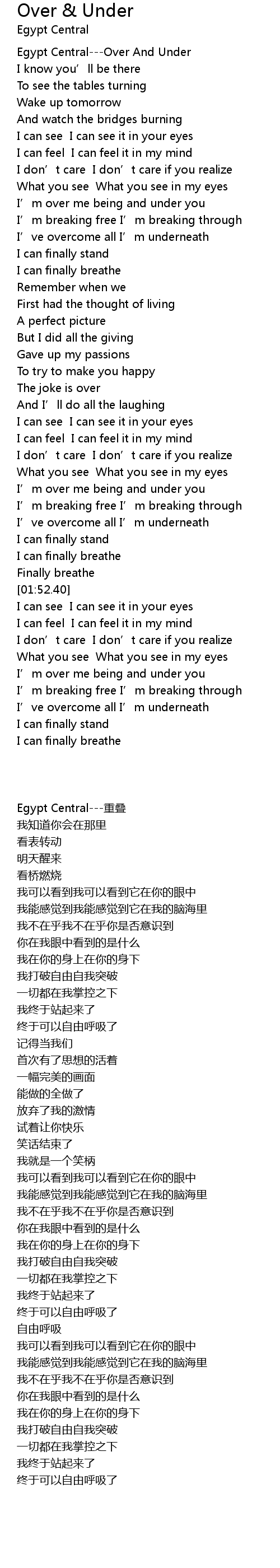 | [00:02.50] | Egypt Central---Over And Under |