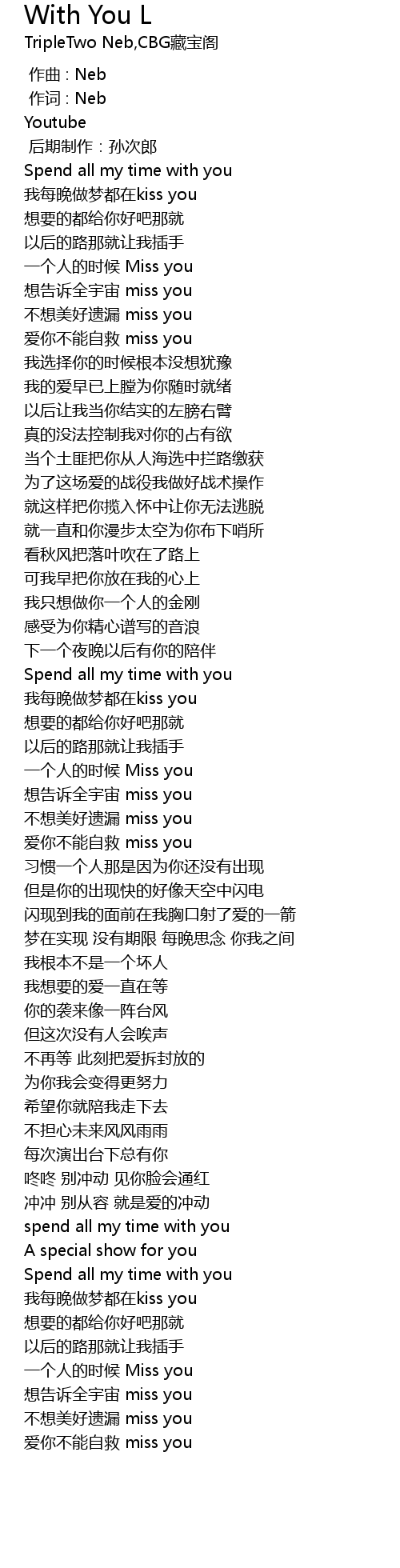 | [03:00.44] | 我每晚做梦都在kiss you |