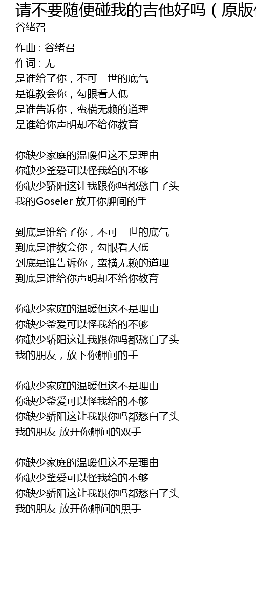 | Song | 请不要随便碰我的吉他好吗(原版伴奏) |