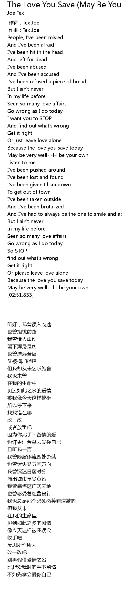 | [00:01.000] | zuò qǔ : Tex Joe |