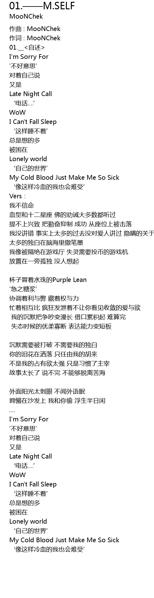 | 我没讲错 事实上太多的过去没对爱人讲过 隐瞒的关于我 太多的独白在脑海里撒笔墨 | |