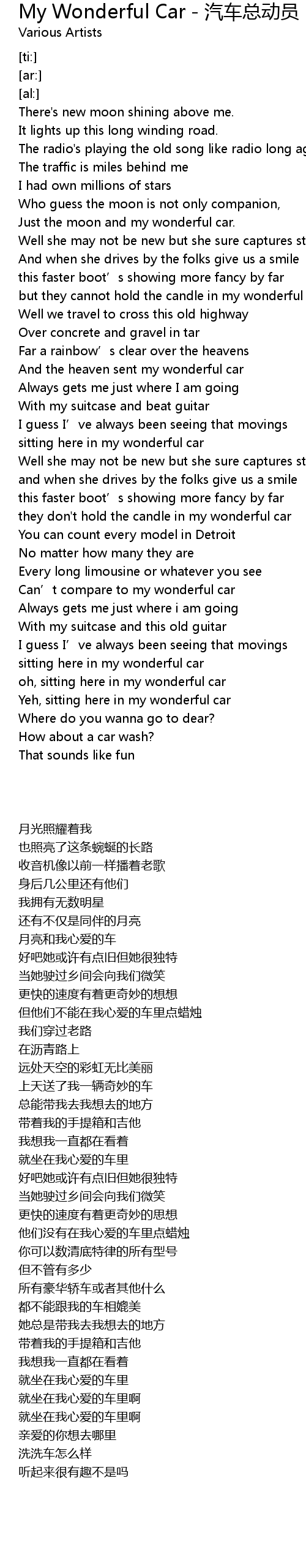 | [00:57.61] | but they cannot hold the candle in my wonderful car |