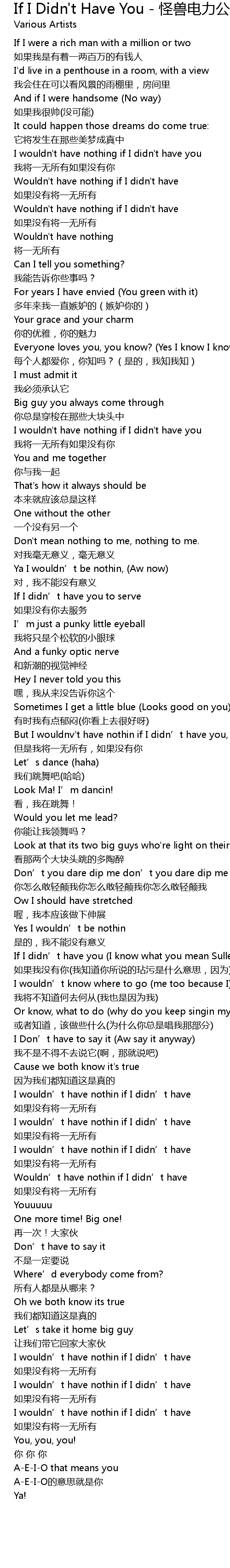 | If I didn’t have you (I know what you mean Sulley because) | |