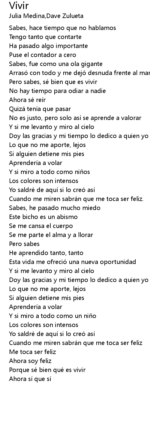 | [01:12.34] | Cuando me miren sabrá n que me toca ser feliz. |