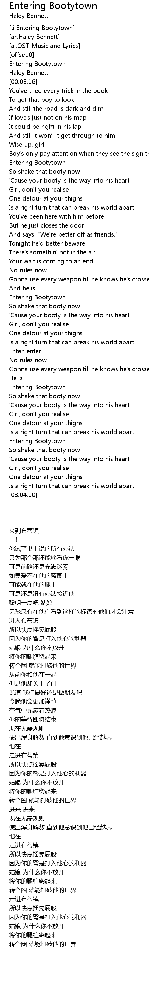 | [00:45.64] | ' Cause your booty is the way into his heart |